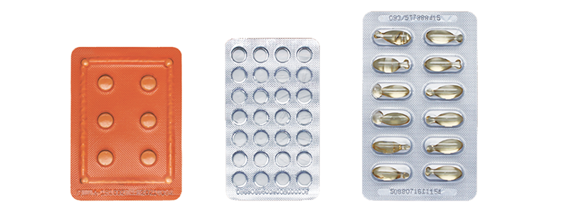 卷型包装材料 | PVC/PVDC/PET/PE/ACLAK | 单面涂胶铝箔(PTP)背封材料 |